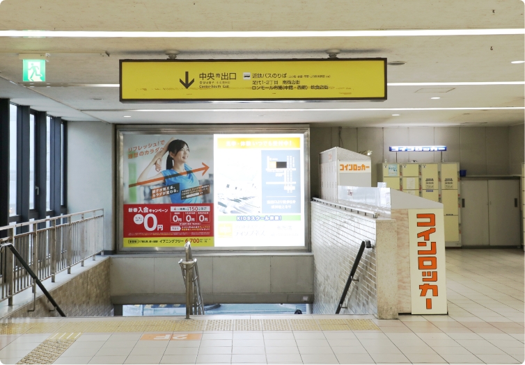 南改札を出たら、右側に直進し、中央南出口の階段を降りてください。