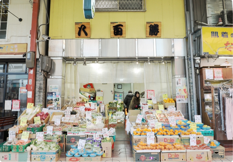 右手に「八百勝」という果物屋さんが見えてきます。