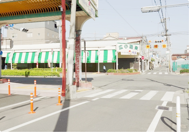 地下鉄千日前線 小路駅の3番出口を出てすぐ、右側にパチンコ屋(TENICHI)があります。このお店の角を右に曲がったら、そのまま道なりに真っ直ぐ進みます。