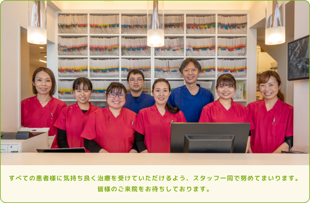 どうすれば虫歯にならなくて済むのか、歯を抜かなくてよいのかをご提案することを診療の基本とし、皆様がいつまでもご自身の歯でおいしく食事を摂っていただけるようにサポートさせていただきたいと考えております。